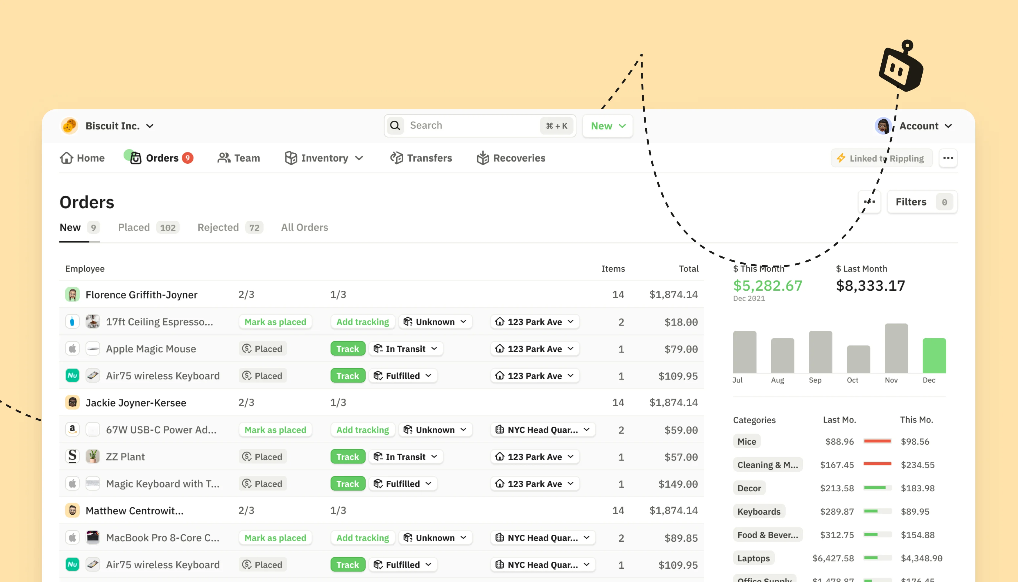 Remy is office management for remote organizations. The application helps employers equip their distributed teams with the tools they need to be productive (computers, desks, chairs etc). We supported strategy, brand, product design, and engineering.