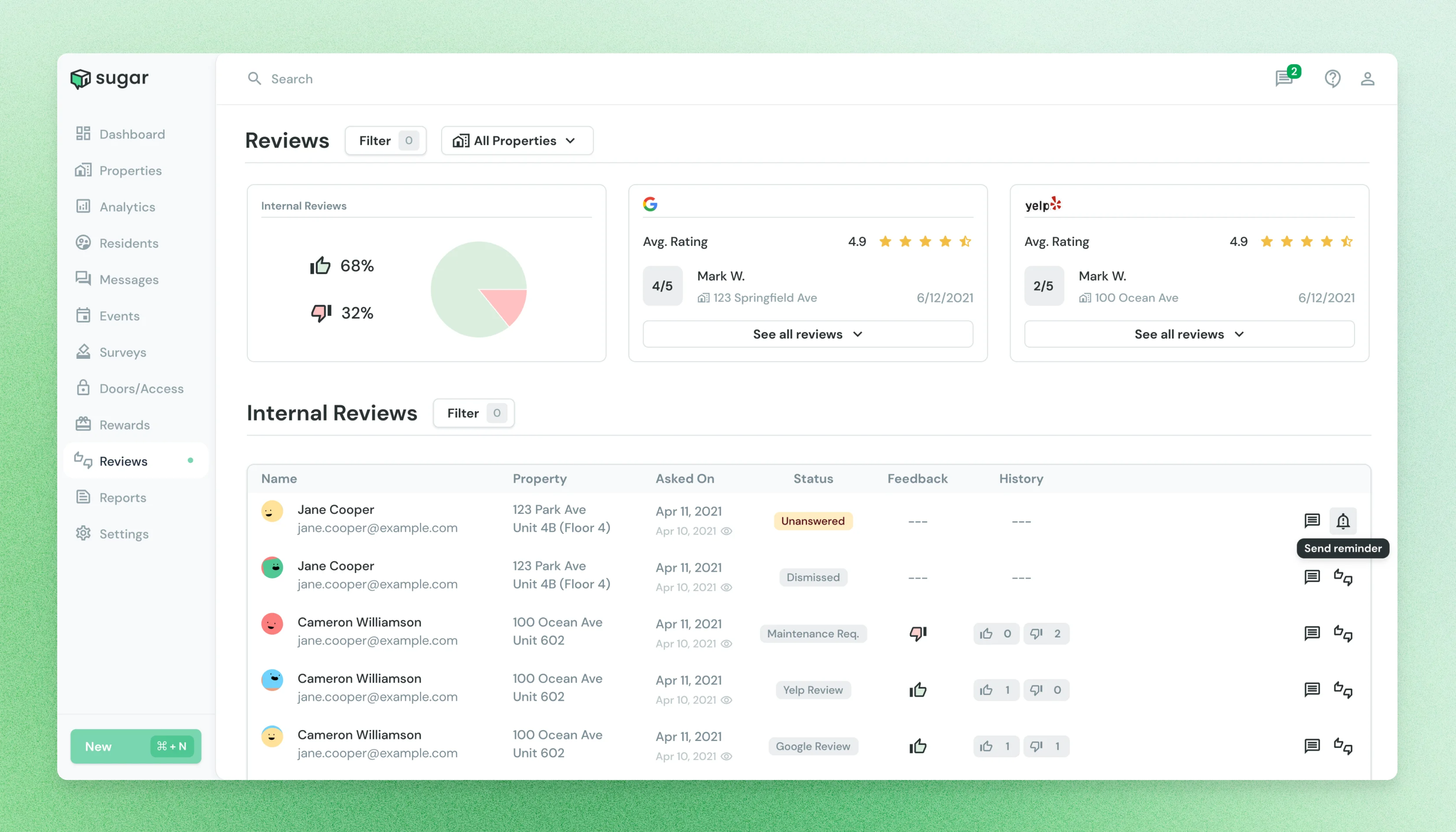 Sugar is a property management toolset for apartment owners and tenants. We helped with their residential mobile application, property manager dashboard, and access control integrations. We also consulted on their team construction and hiring playbook.